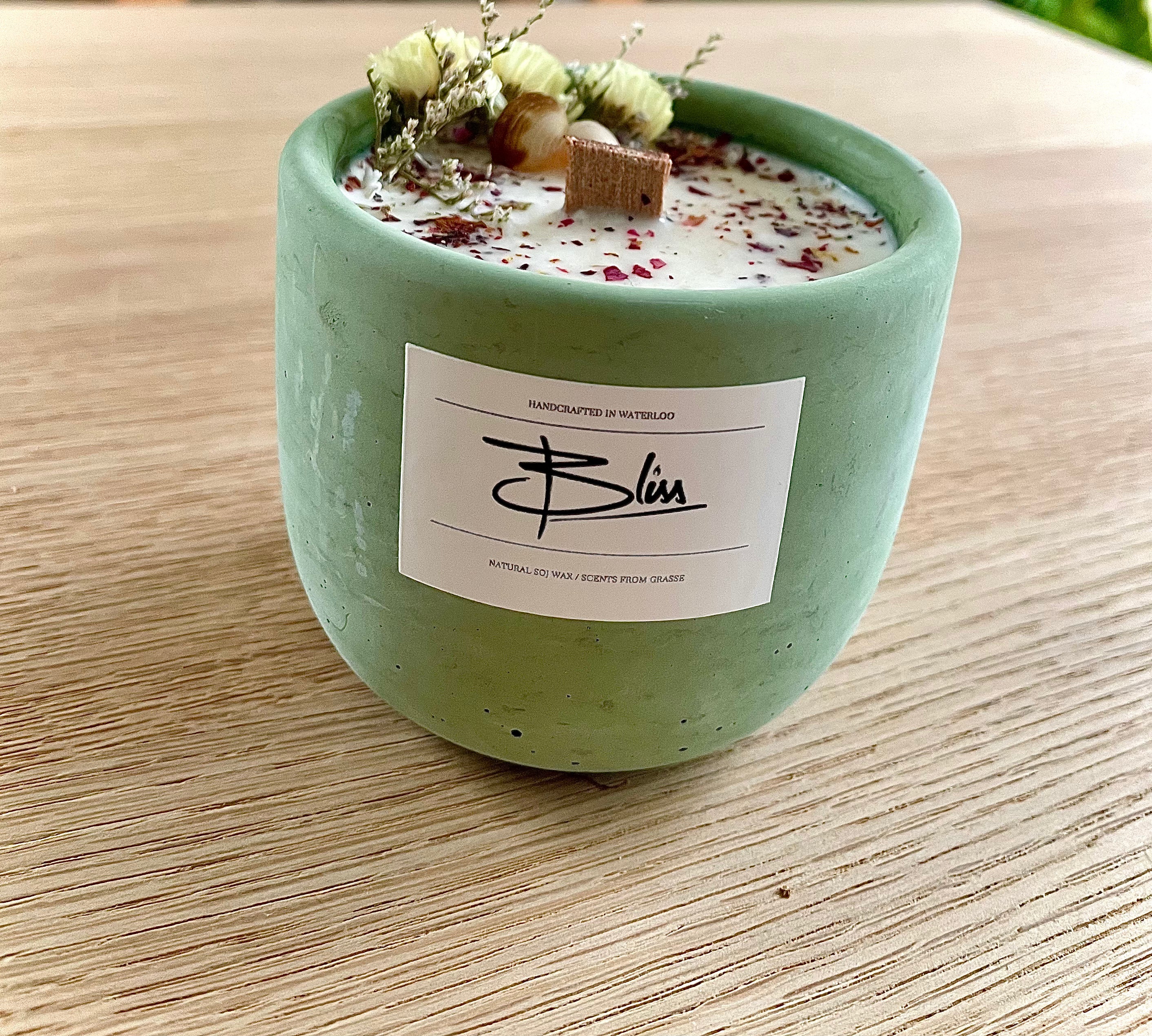 L’univers de la bougie m’ayant toujours attiré, c’est donc naturellement qu’après de longs mois de recherches, d’essais et de questionnements que Bliss a vu le jour dans une petite cuisine de Waterloo.
